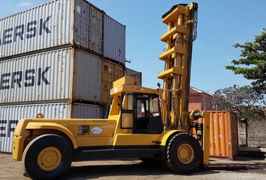 Empilhadeira com capacidade de 30,0 toneladas (Torre alta, média e baixa).